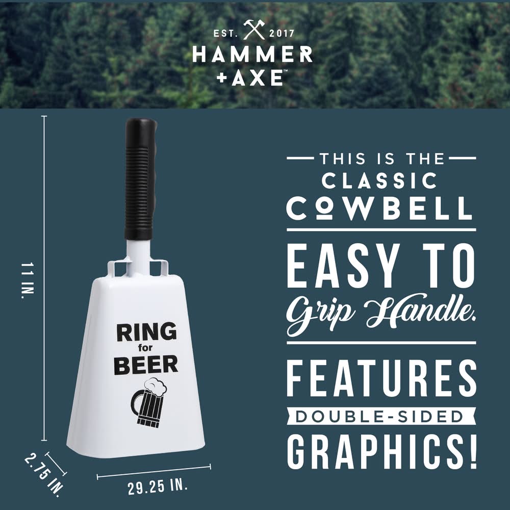Hammer + Axe Father's Day Ring For Beer Cowbell With Sentiment, White
