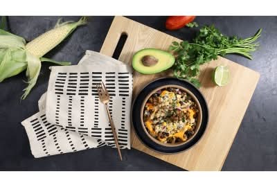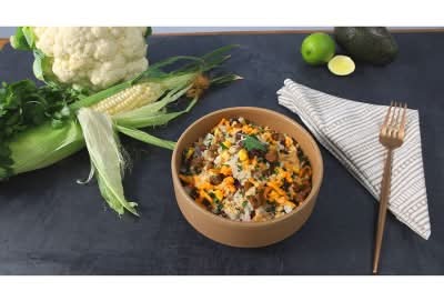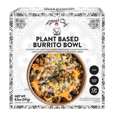 Tattooed Chef Burrito Bowl Tasty, plant-based, and with just the right amount of spice. This bowl features cilantro rice, riced cauliflower, plant-based beef, roasted corn, and black beans in a jalapeño crema. A vibrant, flavor-packed meal that’s quick and easy to enjoy, offering a delicious and satisfying option for any time of day.