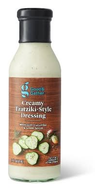 This 11.8-Ounce Creamy Tzatziki-Style Greek Dressing from Good & Gather makes a perfect complement to pita, veggies, chips and more. Made with cucumber and Greek spices, this tasty, creamy Greek dip also makes a great pairing with falafel. Plus, it's made with no artificial flavors or synthetic colors, so you can feel good about sharing some with family and friends. Every product that carries the Good & Gather name starts with quality ingredients that deliver great taste, making it easier for you and your family to eat well every day. We promise you'll love each bite or your money back.