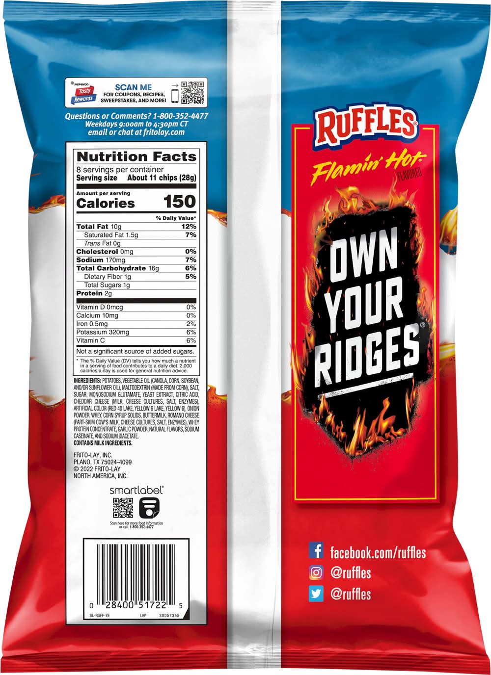 Its time to go one-on-one with flavor that won't stop you taste buds. Because when your favorite player is on fire, your mouth should be too. More ridges. More crunch. • Flavor: Flamin' hot • Frito-lay, Plano,TX,75024-4099