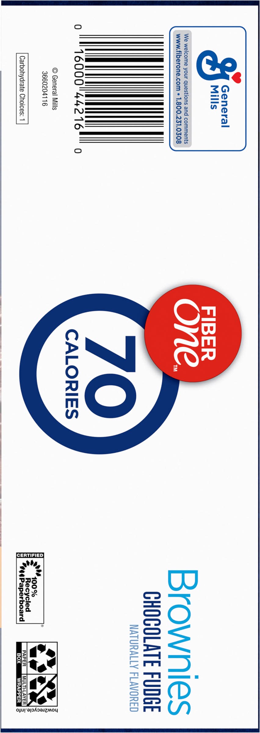 Enjoy an indulgent moment without any of the guilt with Fiber One 70 Calorie Brownie Bars. These bars have only 70 calories and 2 grams of sugar for a delicious fiber bar you can feel good about eating. Each fiber bar contains at least 20% daily value of fiber. Diets high in fiber can help keep your digestive system on track. Choose Fiber One for breakfast bars, office snacks, for the lunch box, or as an on-the-go treat. Fiber One bars come in many great-tasting flavors: Cinnamon Coffee Cake, Birthday Cake, Mint Fudge, Lemon and Chocolate Fudge. Contains 12 bars total. • Flavor: Chocolate fudge • Pack size: 12 • General mills sales, inc., Minneapolis,MN,55440,USA