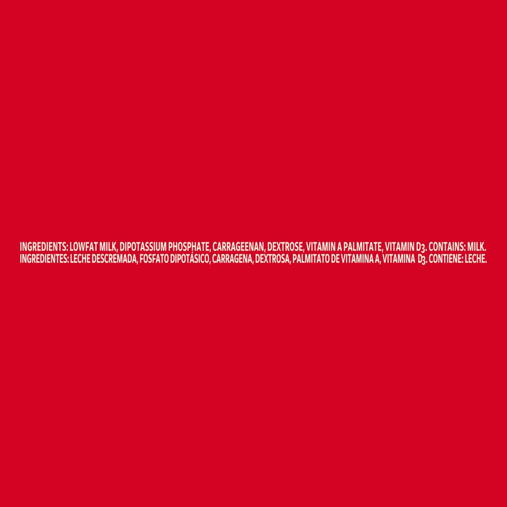 Ingredients: LOWFAT MILK, DIPOTASSIUM PHOSPHATE, CARRAGEENAN, DEXTROSE, VITAMIN A PALMITATE, VITAMIN D3. Contains: CONTAINS: MILK.