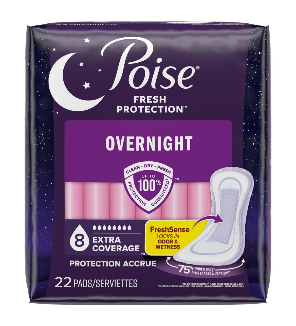 Poise Fresh Protection Overnight Extra Coverage Pads (22 ct)