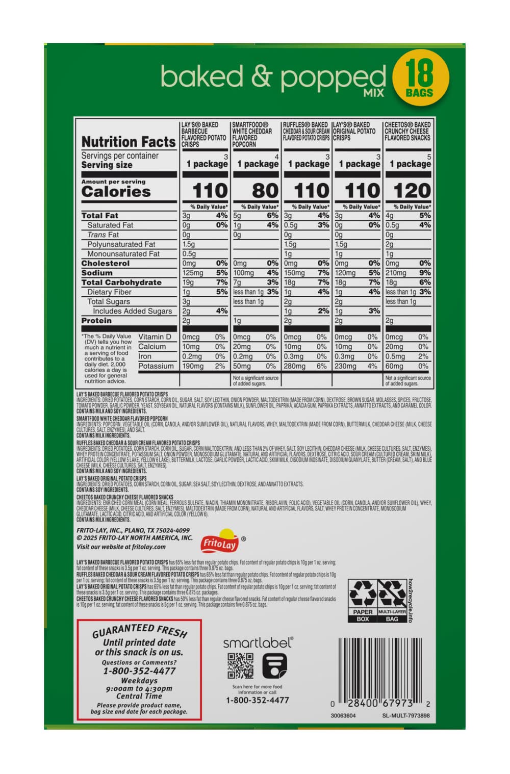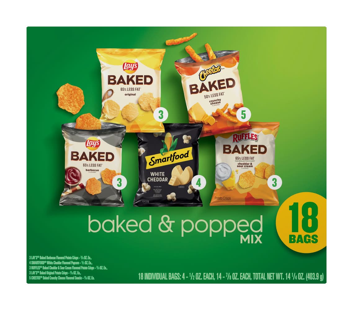 Frito-Lay Baked & Popped Mix Potato Chips Variety pack, Original-Barbecue-White Cheddar-Cheddar & Sour-Crunchy Cheese (18 x 0.79 oz)