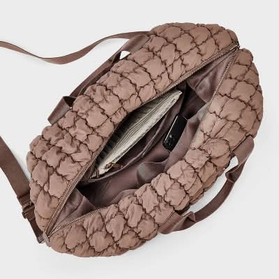 Keep yourself ready for quick trips with the Foundational Weekender Bag from . This unstructured weekender bag features interior and exterior pockets to help provide ample space for your essential items. Designed with a removable strap and double handles, it offers multiple carrying options for your convenience. Found exclusively at Target. Color: Pucker brown
