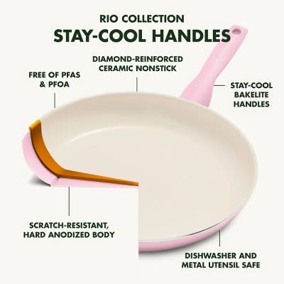 More than just their good looks, every piece in the Rio collection is built to be a fixture in your kitchen. Featuring GreenPan’s signature healthy ceramic nonstick coating, it’s reinforced with diamonds so you can simmer, braise, and sear with ease. The quick-heating aluminum bodies are extra-durable and free of PFAS, PFOA, lead, and cadmium, too. No matter what you’ve got on the menu, this 16-piece set has you covered with glass lids so you can see what’s cooking, and stay-cool Bakelite handles for secure grips. • Color: Blush • Size: 8 in