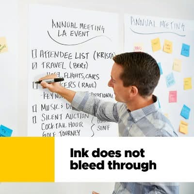 Super Sticky Mini Easel Pad is designed to simplify note-taking during meetings. Each sheet is adhesive-backed, allowing it to stick to most wall surfaces without falling off. The paper is crafted to resist bleed-through, ensuring a cleaner presentation. Additionally, the pad is easily portable, facilitating transportation and use in various locations. Size: 3 M