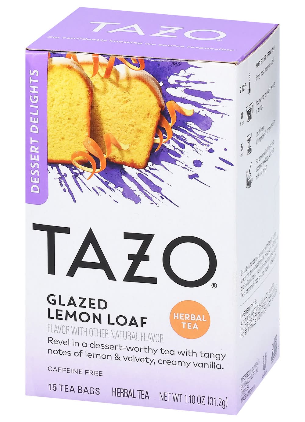 Tazo Dessert Delights Herbal Tea, Glazed Lemon Loaf (1.1 oz, 15 ct)