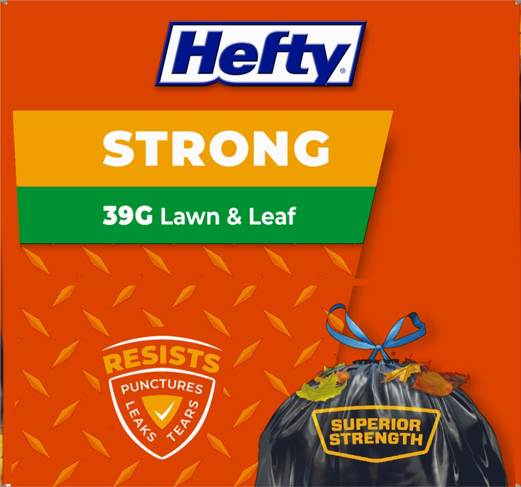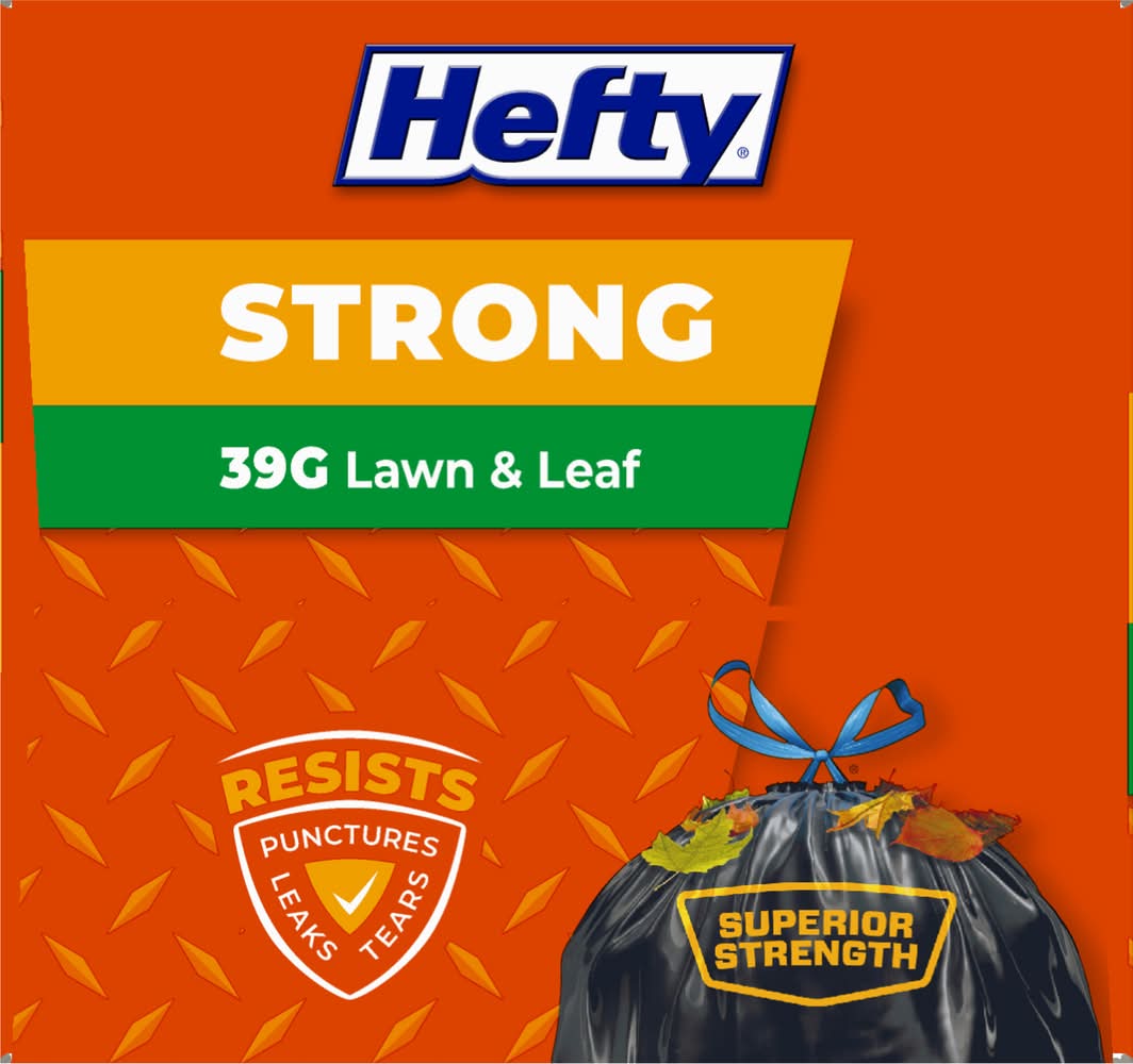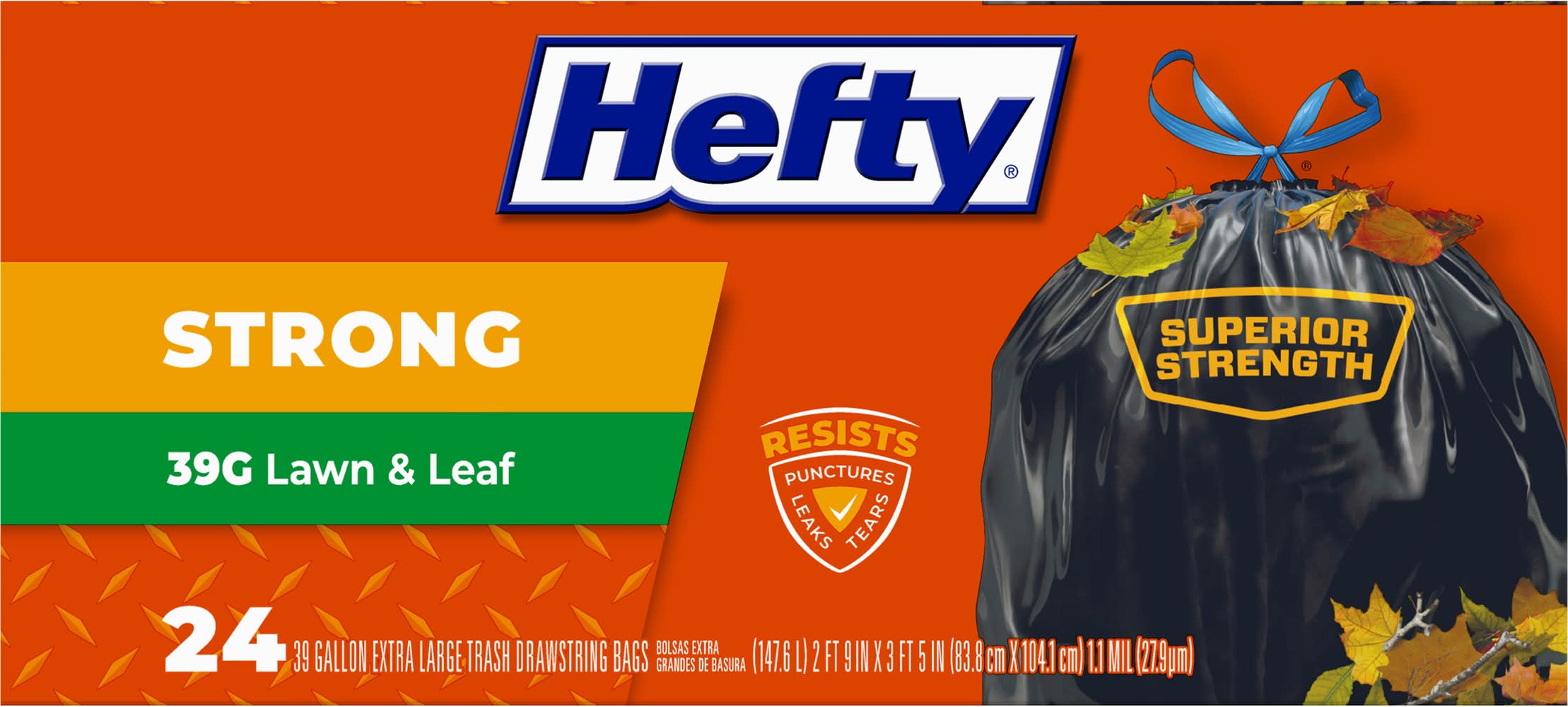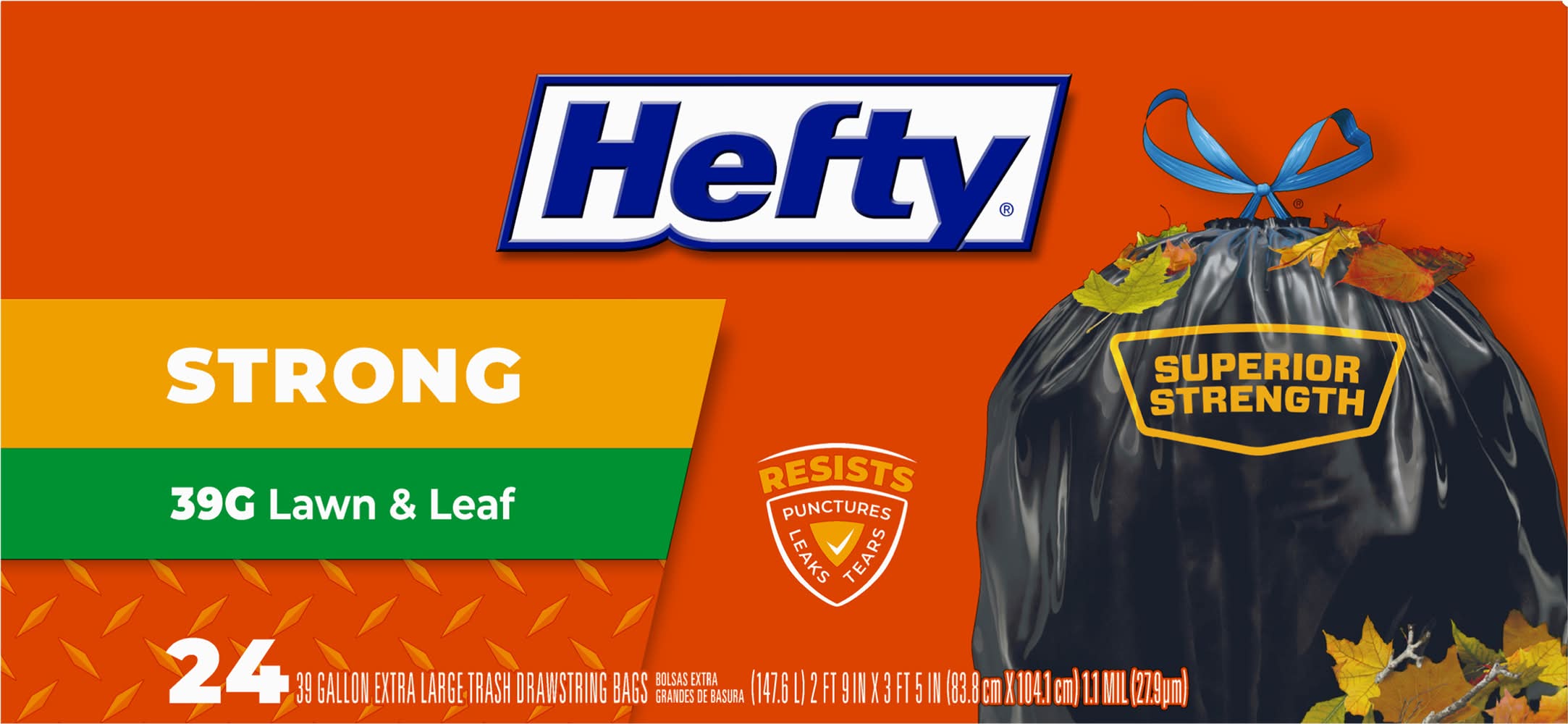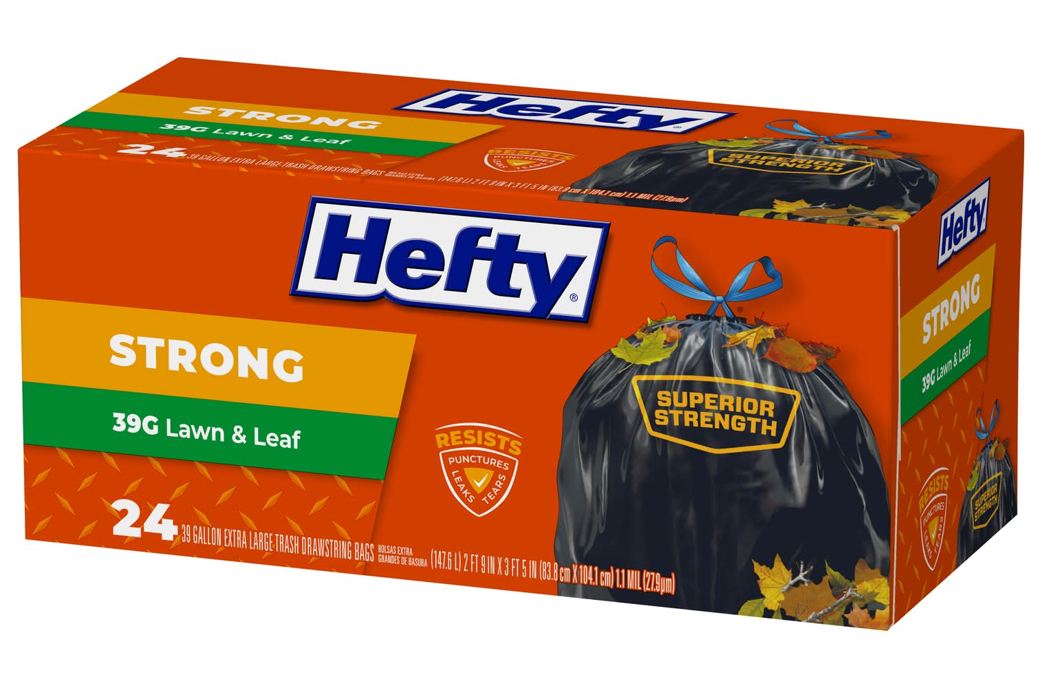 Trash Bag, Drawstring, Lawn & Leaf, Strong, Extra Large, 39 Gallon