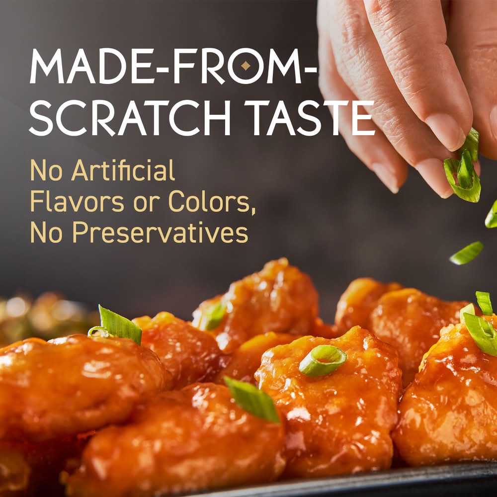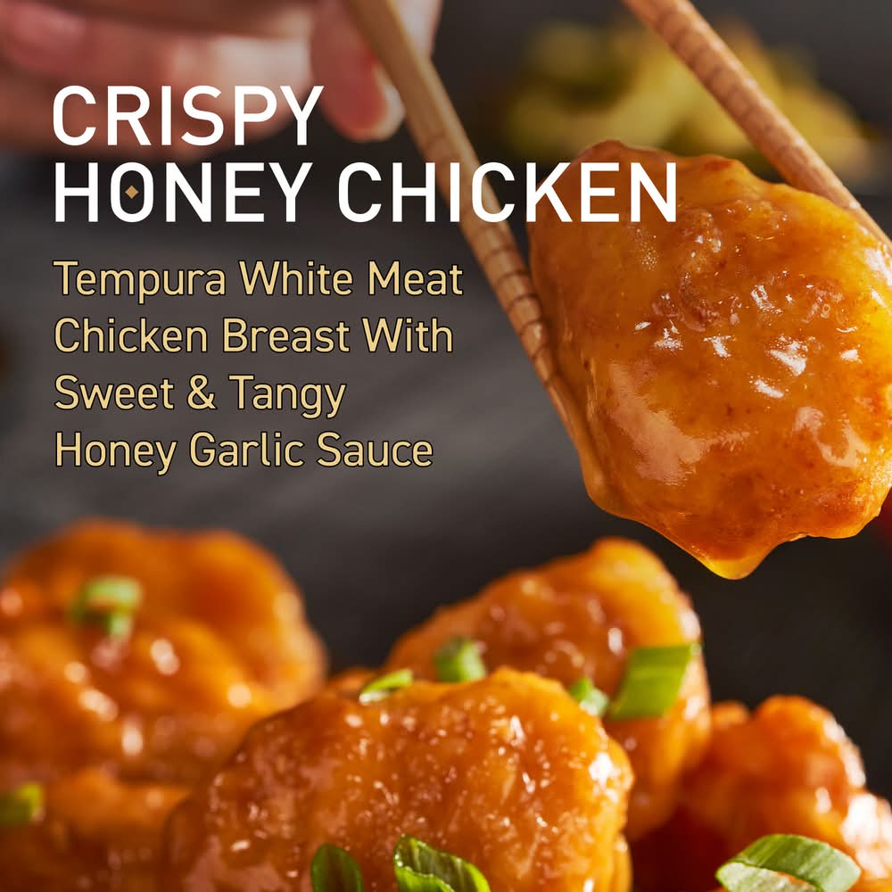 Enjoy delicious restaurant-inspired flavors in the convenience of your own home with P.F. Chang's Home Menu Honey Chicken. Savor the taste of tempura chicken breast with a sweet and tangy honey garlic sauce to pair with all your favorite sides. You don't have to leave your kitchen to enjoy an easy meal with little effort. This mouthwatering frozen chicken is easy to cook in the oven or air fryer in less than 15 minutes and has the same great taste* as before but is now even crispier.** It also has no preservatives and no artificial flavors or colors, so you can serve this dish with confidence at your next family meal. Bring the taste of your favorite Asian-inspired dish to your kitchen table with P.F. Chang's Home Menu frozen foods. Stay in. Eat like you didn't. As PF Chang's 22 oz honey chicken skillet meal Than the battered chicken in P.F. Chang's 22 oz. multi-serve frozen skillet meals Flavor: Tangy honey garlic sauce