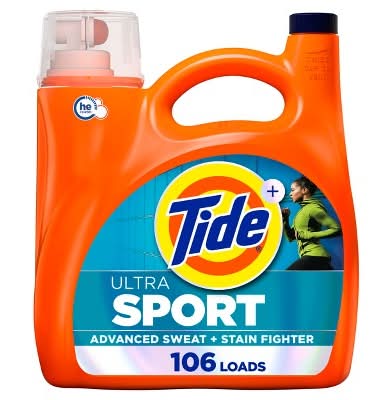 Tide Plus Febreze Sport Odor Defense HE Turbo Clean liquid laundry detergent offers excellent clean and odor removal, plus the Febreze freshness that helps your workout and athletic gear stay fresh up to 3x longer*. It effectively targets tough stains and removes even week-old sweat odors. Also, the Tide's formula contains special scent-renewal technology that releases freshness as you move, helping keep your fabrics smelling great all day. Enjoy a wonderful scent experience that lasts and benefit from even more odor-fighting power. *vs. Tide Original Packaging: Reusable