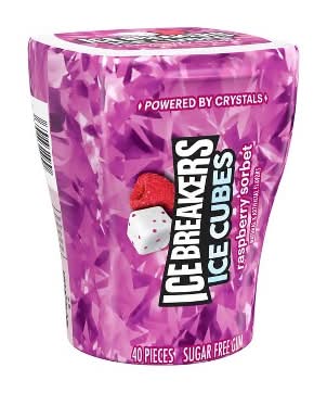 Enjoy a smooth and fruity flavor with ICE BREAKERS ICE CUBES raspberry sorbet flavored sugar free chewing gum. Featured in a convenient 40-piece bottle, this flavored chewing gum offers a sugar free burst of invigorating flavor by your side anywhere you go. Take these convenient cube bottles anywhere you need a boost of freshness. This flavorful chewing gum is a quick and delicious satisfaction, that'll be your best friend during important moments in your life. Wherever the day takes you, these ADA accepted ICE BREAKERS ICE CUBES chewing gum pieces will keep your taste buds busy during meetings, after lunch, throughout movie nights and in the car. Feeling generous? It's easy to share this treat amongst friends, family and coworkers. Getting ready for a first date? Pop a chewing gum piece before the first hello! Need to wake up during long road trips? Get a burst of energy after the first chew. Display this vibrant cube near the candy dish at home or work to let guests, family members, friends and coworkers help themselves. They're sure to thank you for the long-lasting chewing gum treat. After all, it's just as good as a delectable raspberry sorbet dessert without any of the fuss. Flavor: Raspberry sorbet
