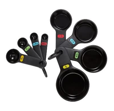 Oxo Softworks Measuring Cups and Spoons Set features tools designed by OXO to enhance measurement accuracy, simplifying precision for various recipes. The distinct design approach of these measuring tools provides a unique perspective on ensuring precise measurements. The set includes both cups and spoons tailored for diverse measuring needs in cooking and baking.