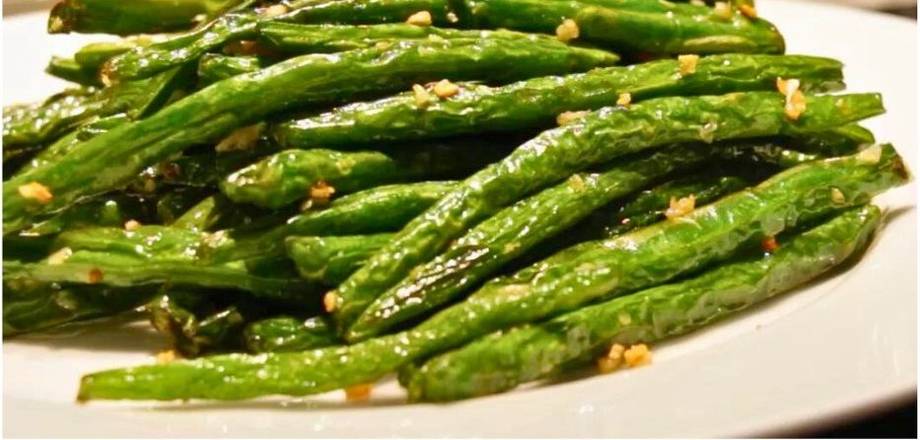 Crunchy green beans, coated with minced garlic, and tossed over high heat for a bold flavor.