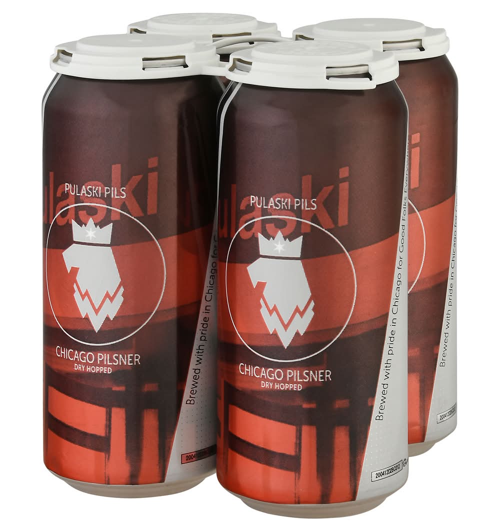 Beer, Chicago Pilsner, Pulaski Pils, 4 Pack • Pack size: 4 • Alcohol by volume: 5.09%