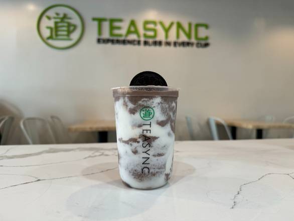 (Caffeine Free) Oreos blended and paired with our fresh made Vanilla Foam swirled generously around the cup.