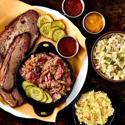 Everyone scores big with this BBQ bundle: Choose 2 orders of brisket or pork ribs, along with a Texas trinity of classic sides