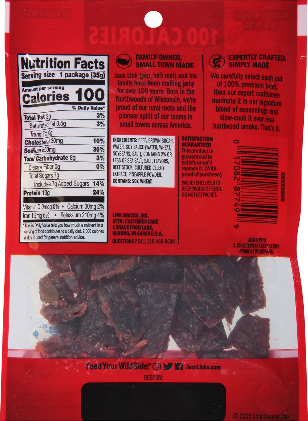 • Flavor: Teriyaki • Link Snacks, 1 Snack Food Lane Minong, WI 54859