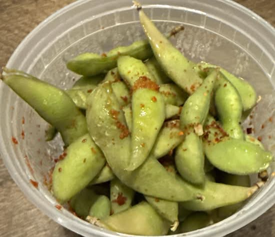 Steamed Edamame Topped with salt and Korean Chili