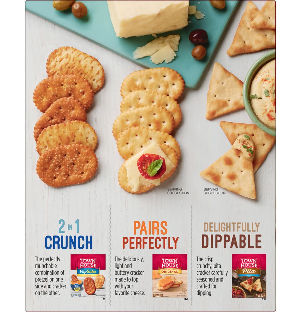 Elevate snacking, entertaining, and everyday celebrations year-round with classic Town House Light and Buttery Original Crackers. Includes one, box of uniquely flaky crackers for a satisfying stand-alone snack. They also go great with tasty toppings like goat cheese, preserves, and chicken salad. Made with delicious ingredients, cholesterol free (2g polyunsaturated fat, 0.5g monounsaturated fat) and low in saturated fat (5g total fat per serving) every box of savory crackers is an invitation to explore all kinds of exciting ingredient combinations, ready to take your moments with family and friends over the top. When you want to serve up a delicious treat or set out a spread that feels a bit more special for partygoers, make iconic Kellogg's Town House Light and Buttery Original Crackers your first choice. Kellogg Sales Co., Battle Creek, MI.