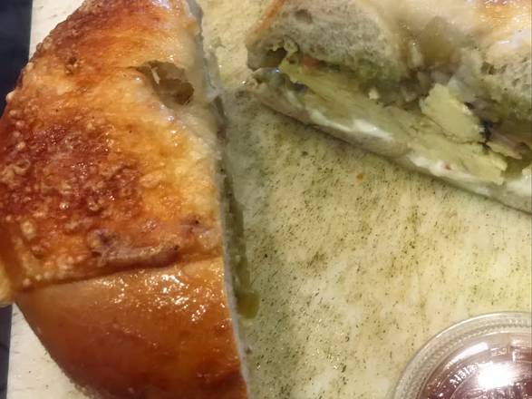 Eggs, guacamole, cream cheese, green chili, onion and salsa.