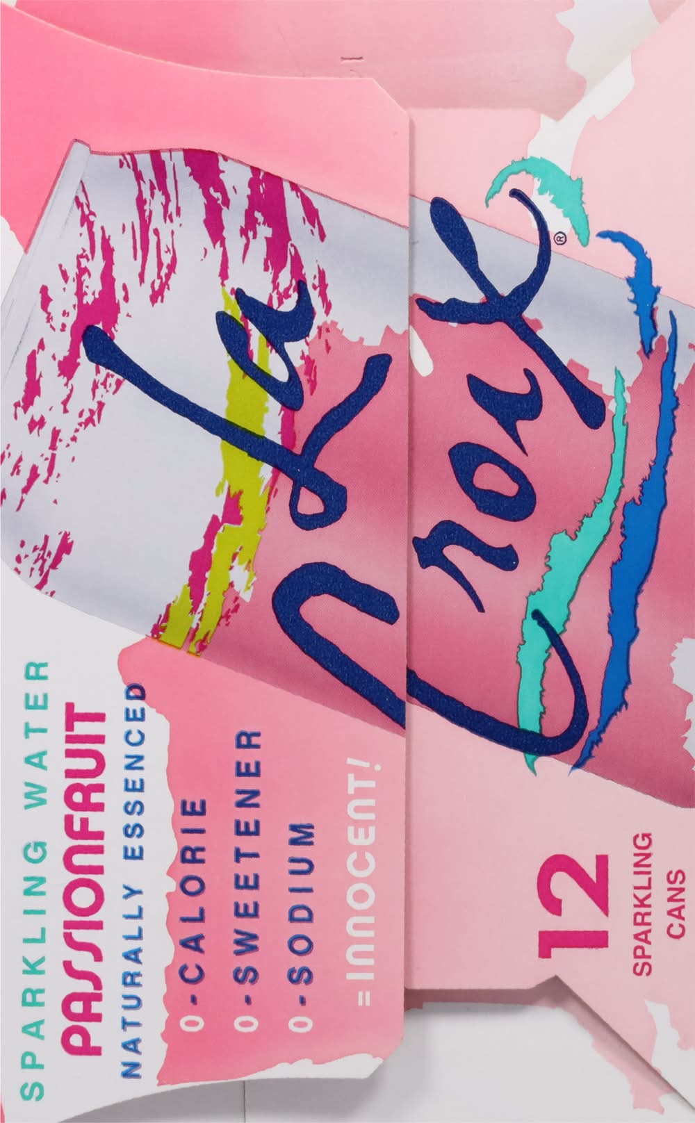 0 - Calorie; 0 - Sweetener; 0 - Sodium = Innocent Non-GMO Project verified. non gmo project.org. Naturally essenced. Whole 30 Approved. Please recycle. Product of USA. • Brand: Lacroix • Flavor: Passionfruit • Pack size: 12 • kosher, GMO-free, • LaCroix Beverages, Inc., 26901 Industrial Blvd, Hayward, CA, 94545 • Packaging: Reusable