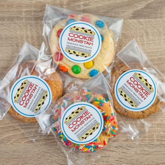 Your choice of cookie placed in a cello bag and sealed with a sticker. Great to send as a gift or a Thank you! For orders over 12 cookies, please expect a bit of a delay, as we prepare these when ordered.