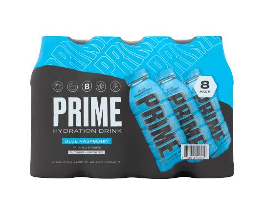 Prime Hydration Sports Drink, Blue Raspberry (8 x 16.9 fl oz)