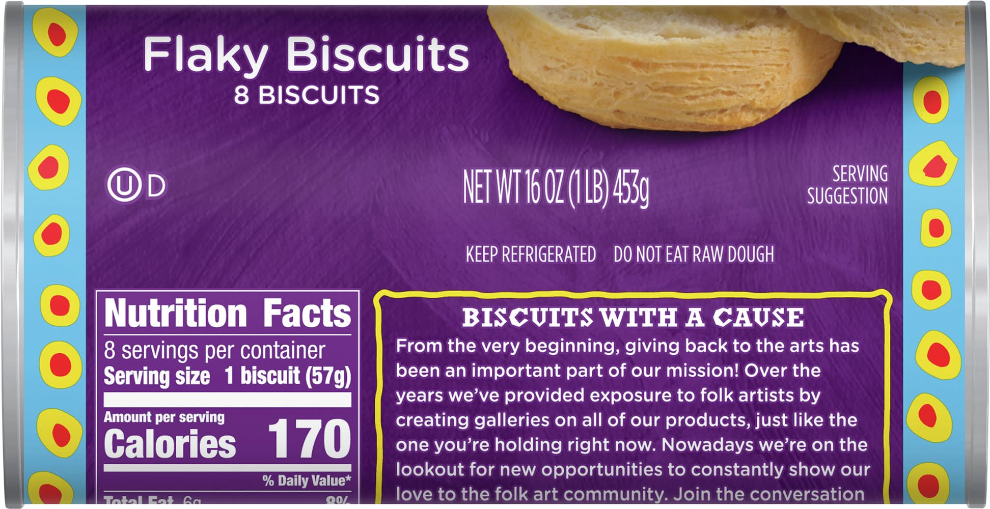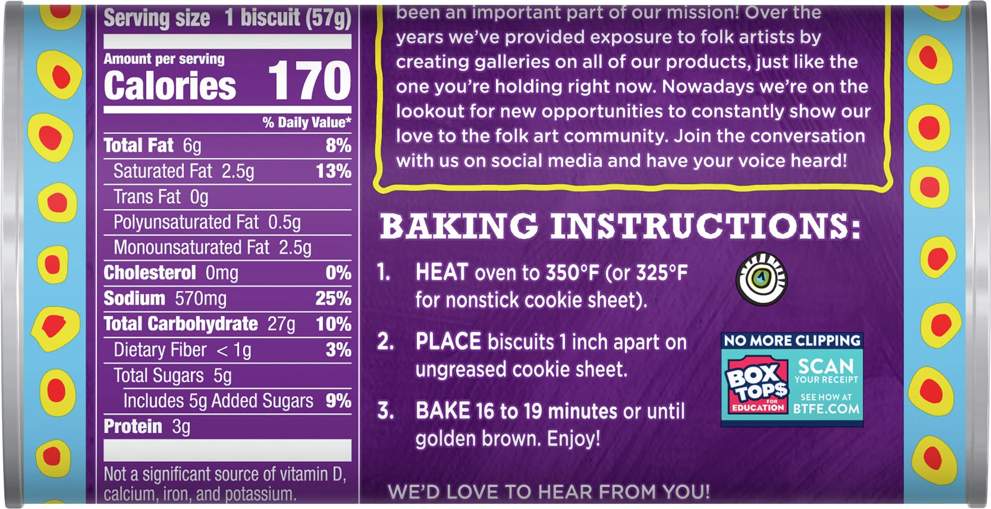 Directions for use: Open with three easy steps: 1. Peel off this label. 2. Peel off white label inside where indicated. 3. Press a spoon against canister's seam. Pop! Storage recommendation: Keep refrigerated.
