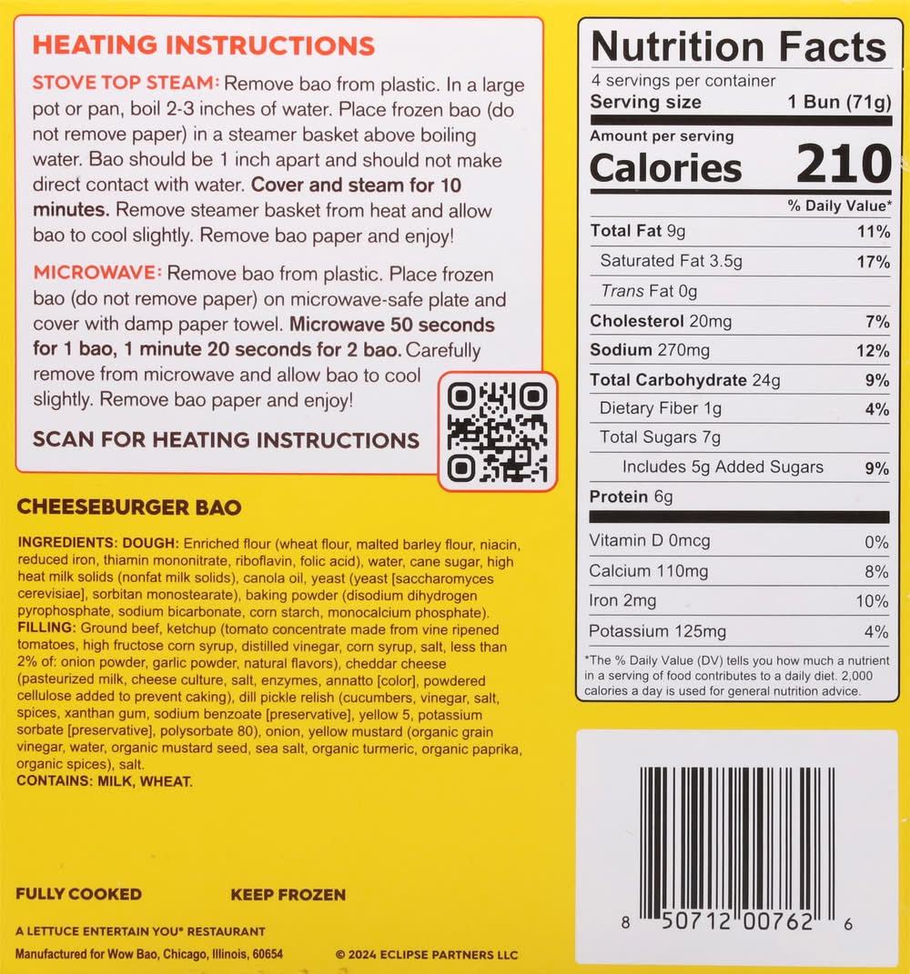 Wow Bao Cheese Burger Bao (10 oz, 4 ct)