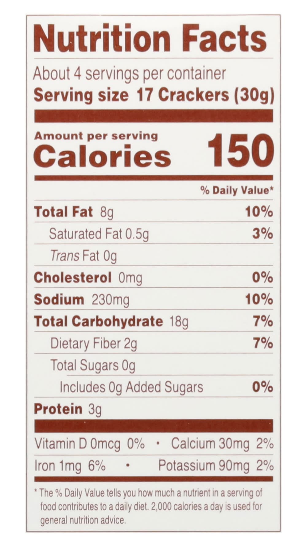 These are crafted with a nut and seed flour blend of almonds, sunflower seeds, and flax seeds. These crispy crackers offer a delicate sea salt flavor, making them perfect for snacking or pairing with cheese and dips. • Flavor: Rosemary & sea salt • Simple Mills, Chicago, Il, 60654. • Packaging: Reusable