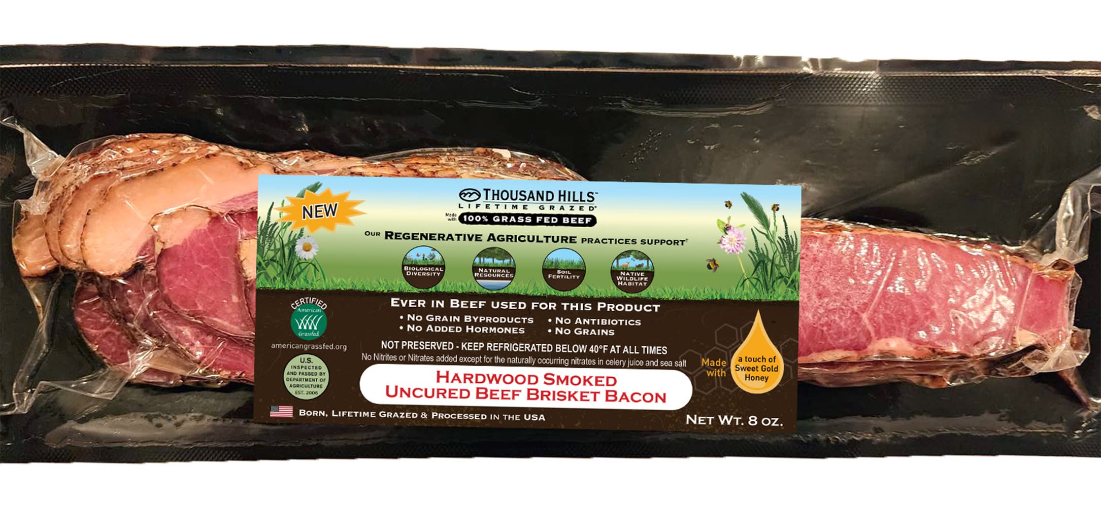 Thousand Hills Lifetime Grazed Uncured Hardwood Smoked Beef Brisket Bacon (8 oz)