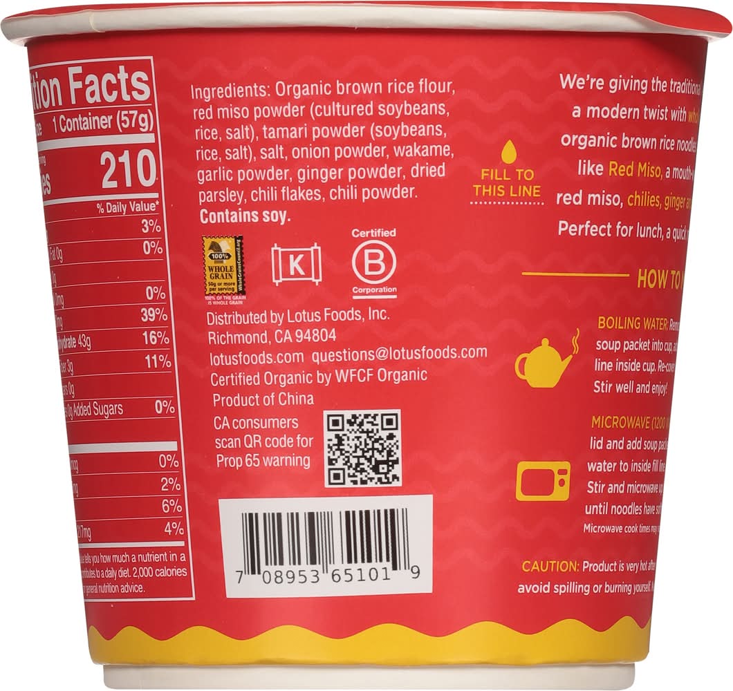 Rice Ramen Red Miso Noodle Soup Lotus Foods, Inc., Richmond, CA, 94804