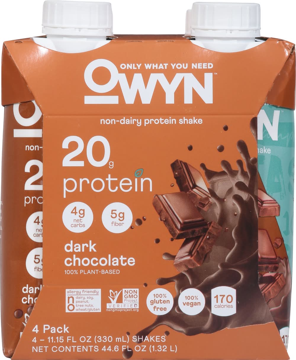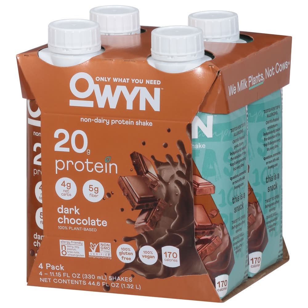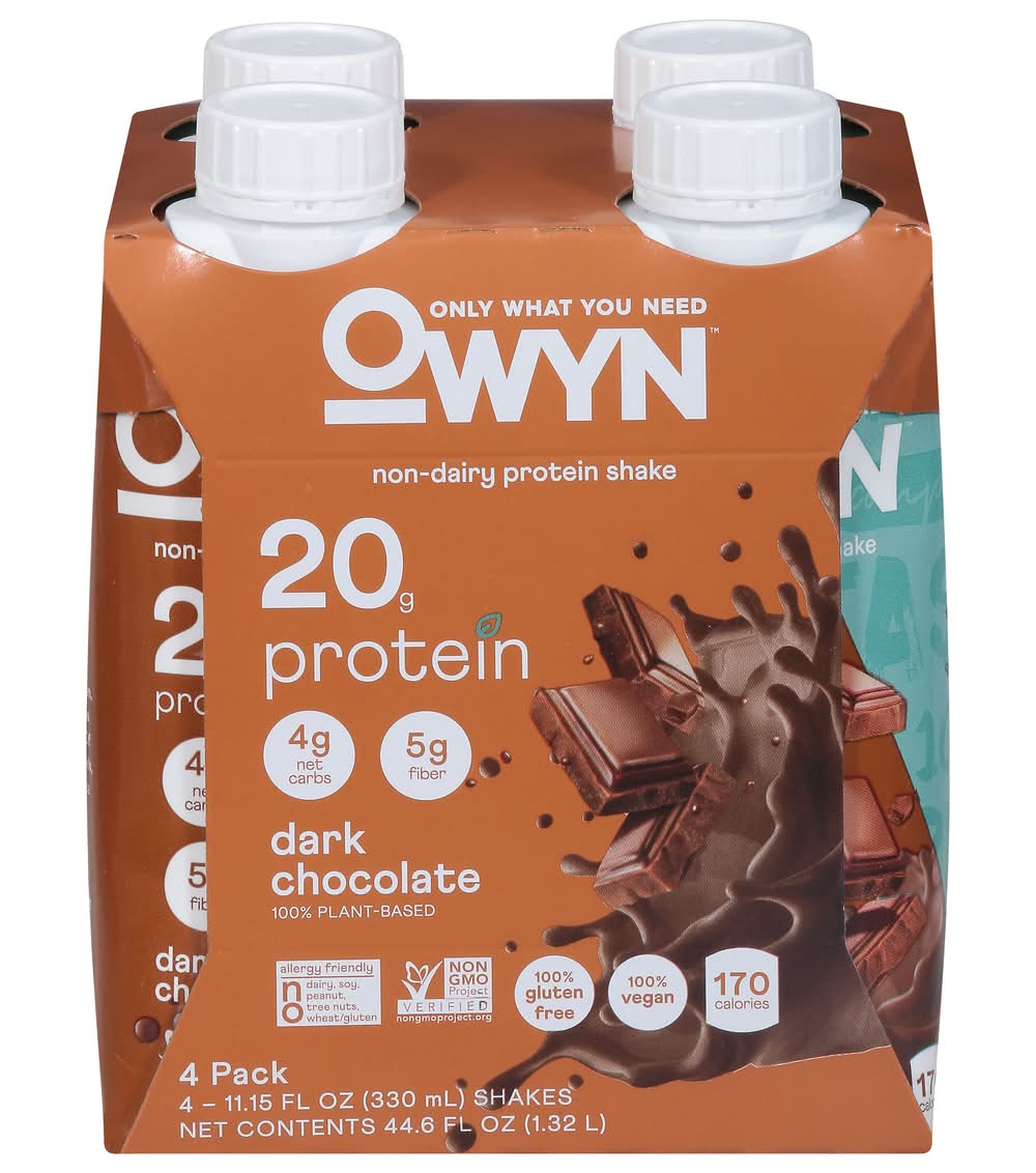 OWYN Non Dairy Plant-Based Protein Shake, Dark Chocolate (4 x 11.15 fl oz)