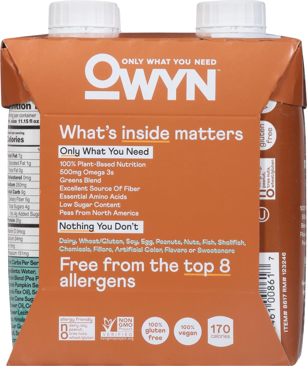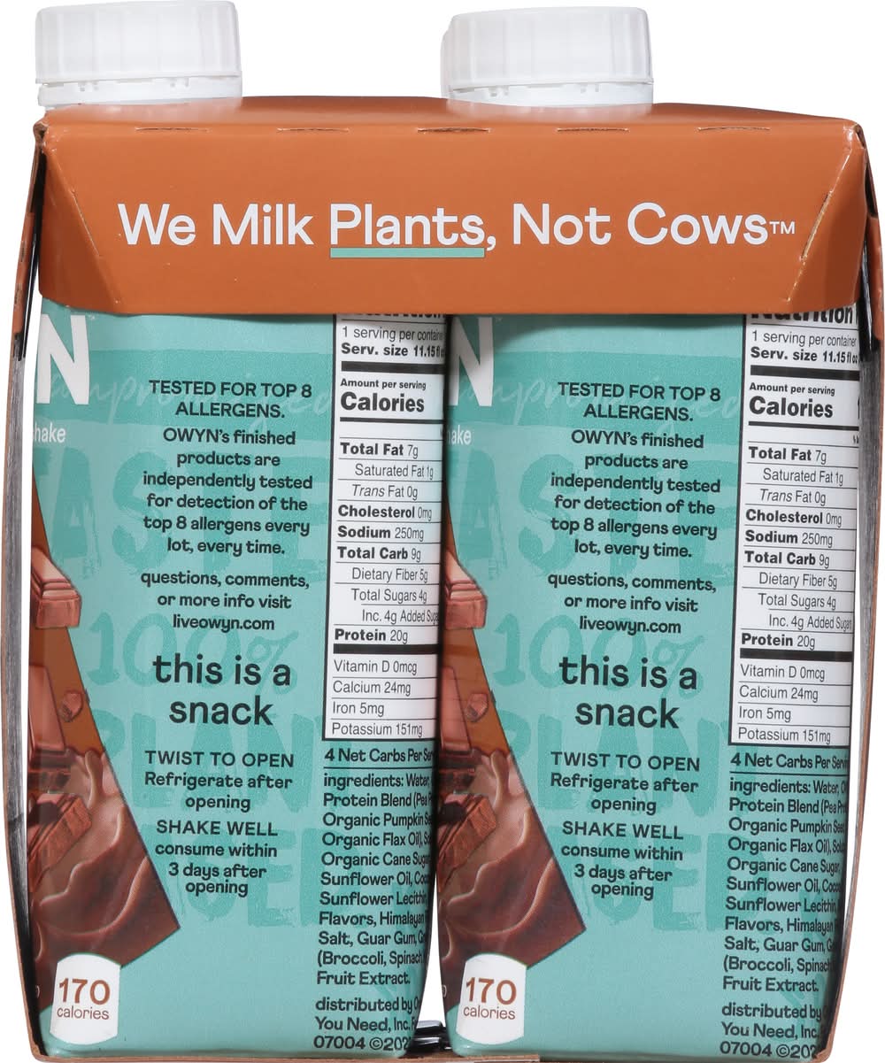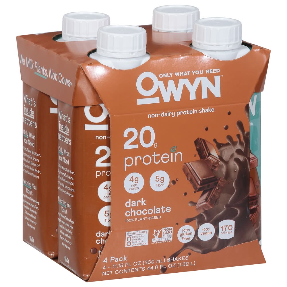 OWYN Non Dairy Plant-Based Protein Shake, Dark Chocolate (4 x 11.15 fl oz)