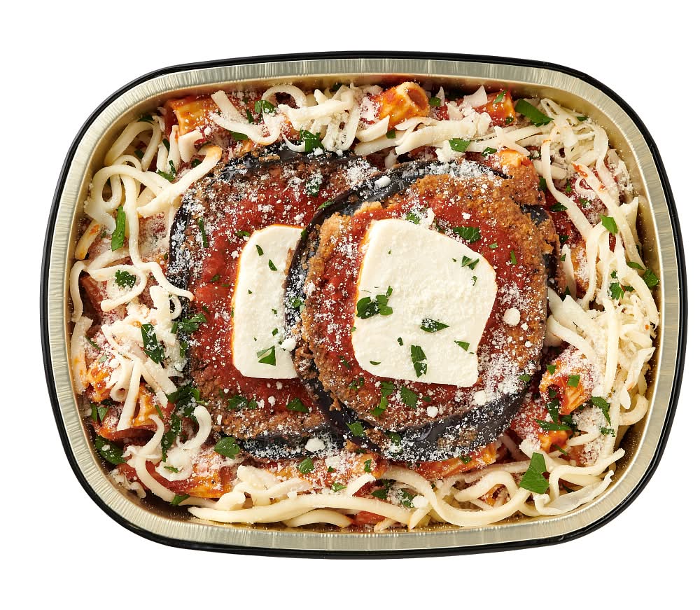 Rigatoni pasta tossed in marinara sauce creamy shredded and fresh mozzarella cheese crispy breaded eggplant cutlets finished with Pecorino Romano cheese and fresh parsley.
