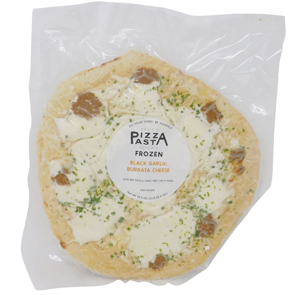 Katie's Pizza and Pasta Black Garlic Burrata Cheese features a hand-stretched crust baked in a 700-degree wood-fired oven. Using select scratch and specialty ingredients, it is immediately blast frozen to preserve quality and flavor.