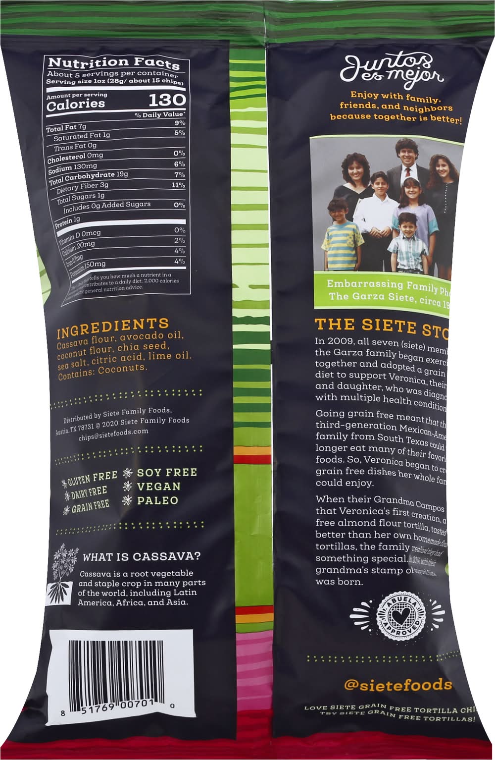 Siete Foods Grain Free Tortilla Chips, Lime (5 oz)