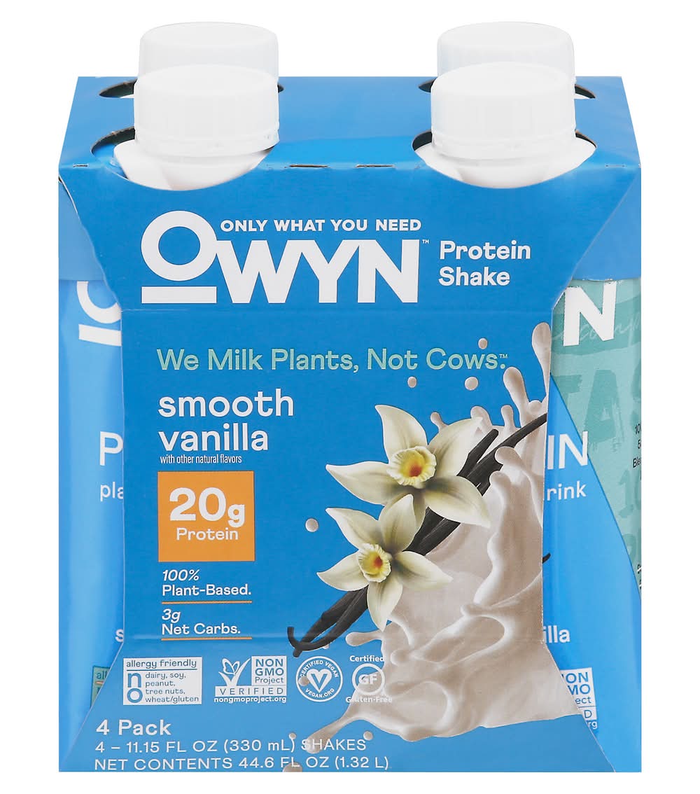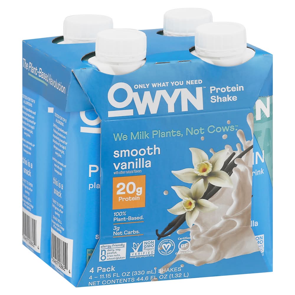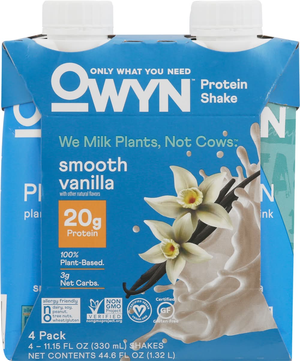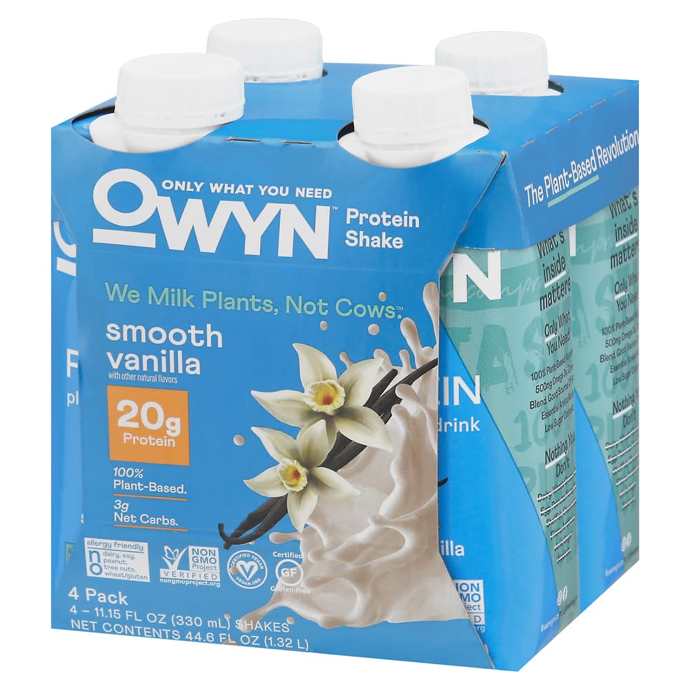 OWYN 100% Plant-Based Protein Shake, Smooth Vanilla (4 x 11.15 fl oz)