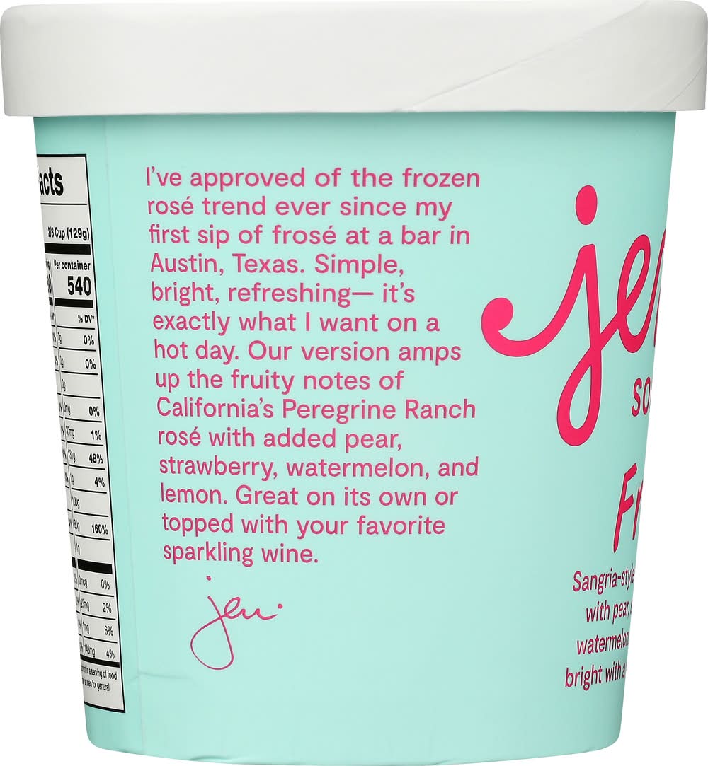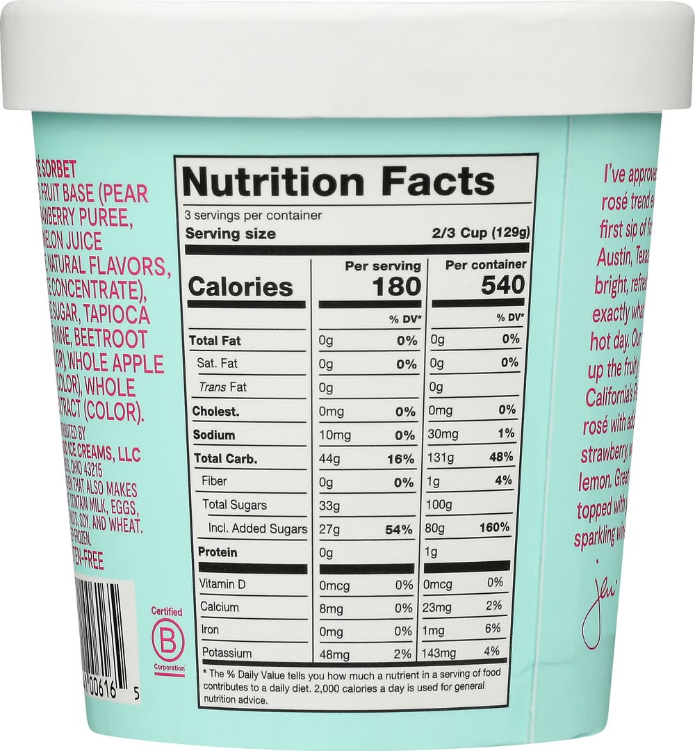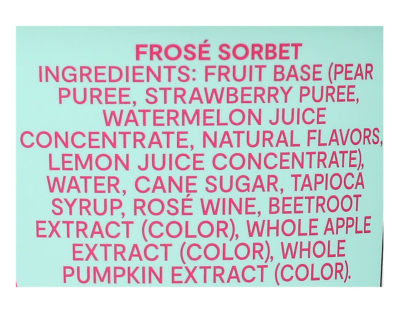 Ingredients: Fruit Base (Pear Puree, Strawberry Puree, Watermelon Juice Concentrate, Natural Flavors, Lemon Juice Concentrate), Water, Cane Sugar, Tapioca Syrup, Rose Wine, Beetroot Extract (Color), Whole Apple Extract (Color), Whole Pumpkin Extract (Color) Contains: 'May Contain Milk', 'May Contain Eggs', 'May Contain Peanuts', 'May Contain Tree Nuts', 'May Contain Soybeans', 'May Contain Wheat'