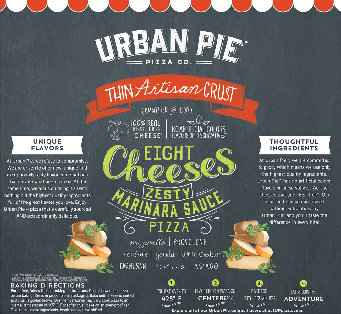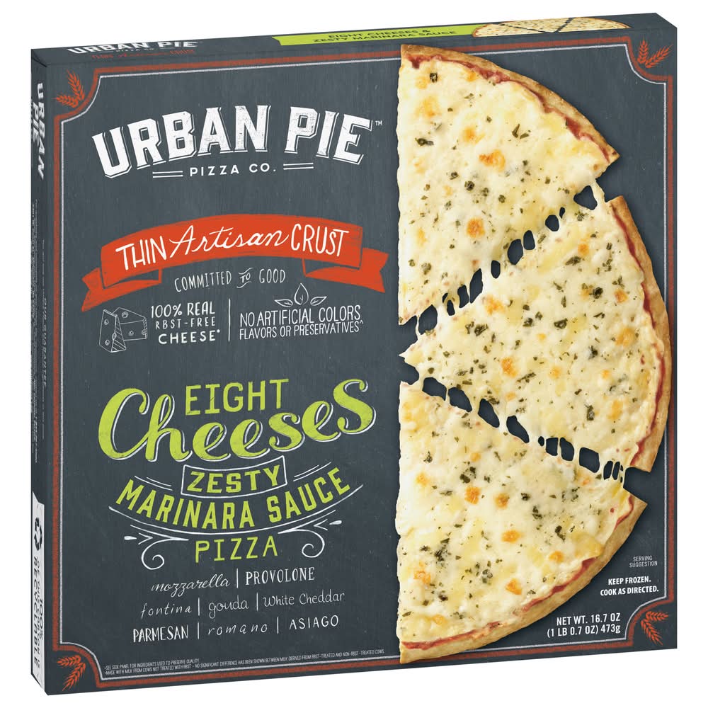 Urban Pie Pizza Co. Thin Artisan Crust Frozen Pizza, Eight Cheeses & Zesty Marinara Sauce (16.7 oz)