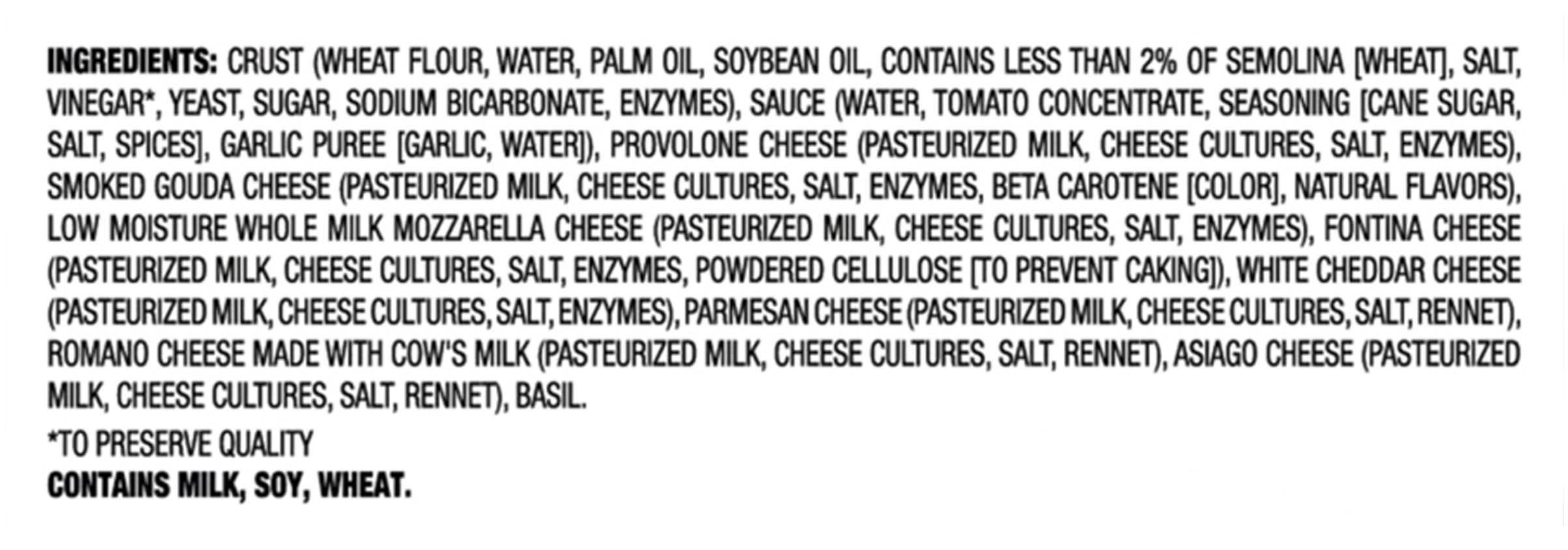 • Flavor: Eight cheeses & zesty marinara sauce • Packaging: Reusable