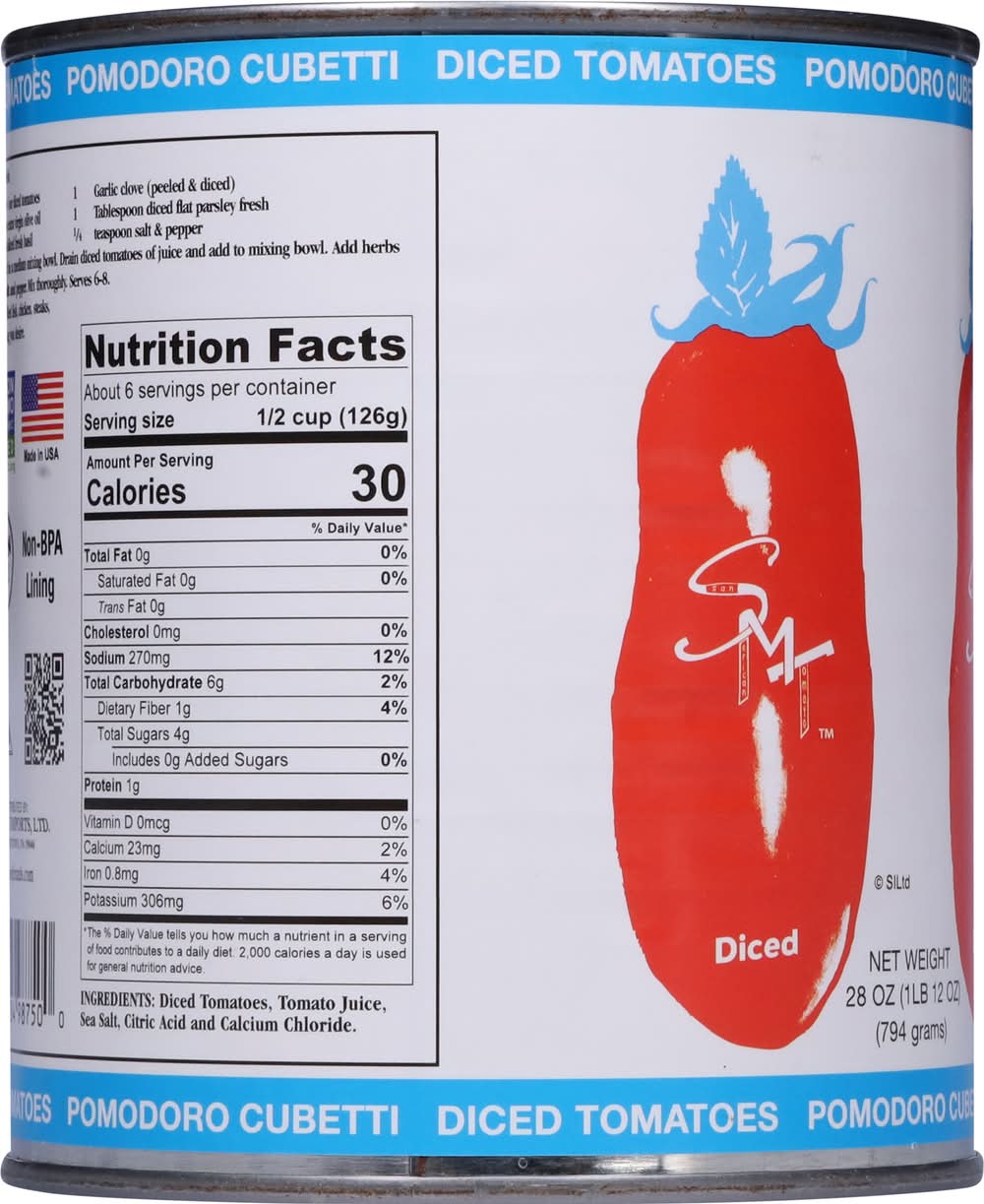 San Marzano Diced Tomatoes are verified by the Non-GMO Project, ensuring they do not contain genetically modified organisms. They are also gluten-free, catering to those with specific dietary needs or preferences. The packaging is designed with a non-BPA lining for added consumer safety. These tomatoes are cultivated and packaged within the United States, highlighting domestic production. Number of servings: 6