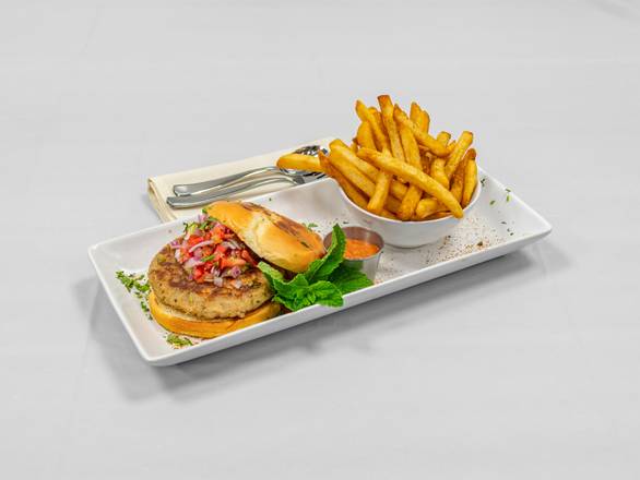 High protein, white bean and grilled jalepenos patty, served with fries on a soft buttery brioche bun. Can be made vegan.