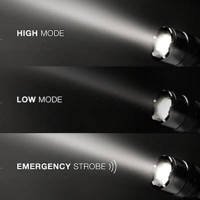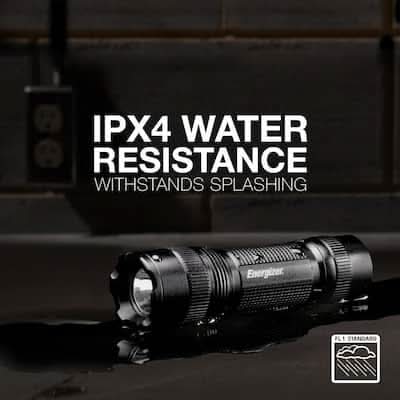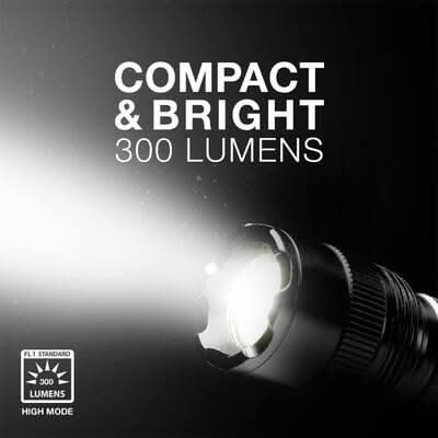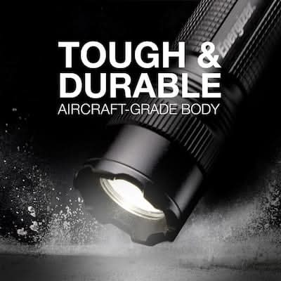 Powerful brightness fits perfectly in your hand with the Energizer TAC 300 LED Tactical Flashlight. This Energizer handheld flashlight is built to take a tumble and shine on with an aircraft-grade aluminum body and impact-resistant up to 1 meter. This LED flashlight delivers a beam of 300 lumens on high. This tactical metal flashlight offers the brightness, dependability and compact design that you need for DIY projects, camping, outdoor activities and emergencies. Adjust the beam with three modes: High, Low and Strobe for emergency situations. A rear push button allows you to easily change the mode while holding the handheld LED light, and a clip secures to your pocket, tool bag or brief case for easy access. A long-lasting lithium battery provides the run time you depend on from a battery powered flashlight. Trust Energizer to come through with the powerful beam and durable construction you need from a handheld LED flashlight.