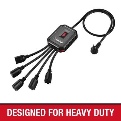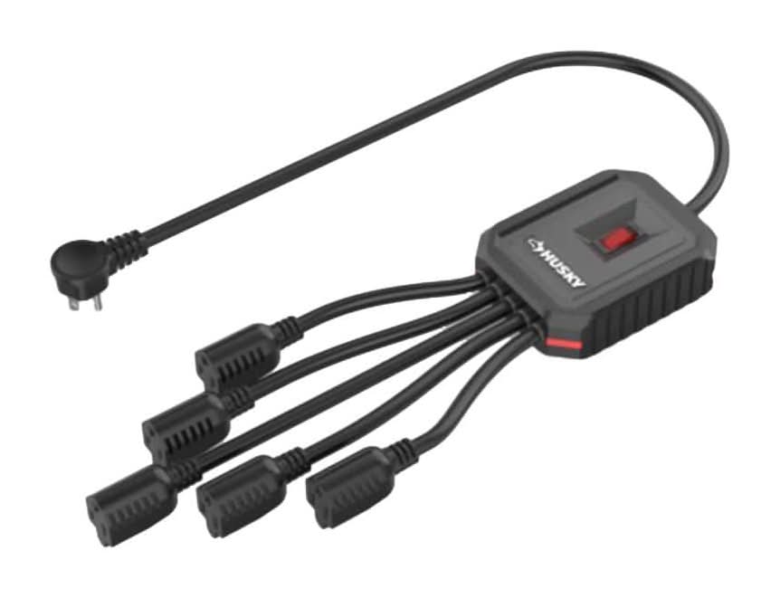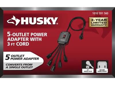 The Husky 3 ft. 5-Outlet Power Squid Adapter is ideal for powering tools and electrical devices where additional flexible outlets are needed. 5 flexible single outlets optimize the convenience of connecting multiple plugs without overcrowding. Adaptor protects against overloads and reduces cluttered cables. • Color: Black • Size: 3 ft