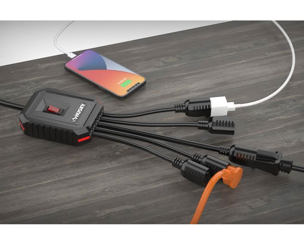 Husky 3 Ft. 5-Outlet Power Squid Adapter Extension Cord, Black