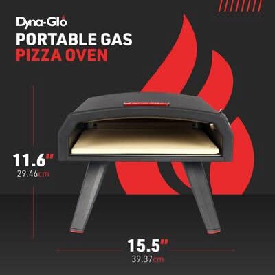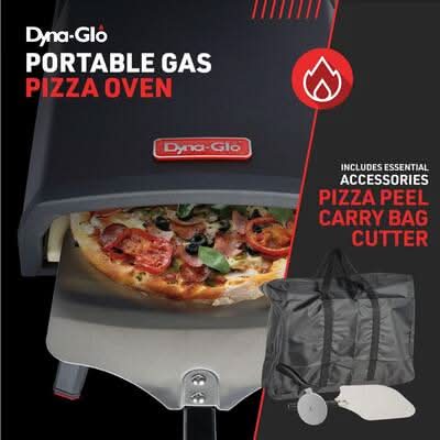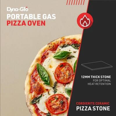 The Dyna-Glo Portable Gas Pizza Oven heats up to over 950°F, ready to create a perfect 12 in. pizza with just the push of its pulse ignition. The stainless-steel burner, paired with a 12mm Cordierite stone, ensures FUELS USED IN LIQUEFIED PROPANE GAS APPLIANCES, AND THE PRODUCTS OF COMBUSTION OF SUCH FUELS, CAN EXPOSE YOU TO CHEMICALS INCLUDING BENZENE, WHICH IS KNOWN TO THE STATE OF CALIFORNIA TO CAUSE CANCER AND BIRTH DEFECTS OR OTHER REPRODUCTIVE HARM. For more information go to: www.P65Warnings.ca.gov