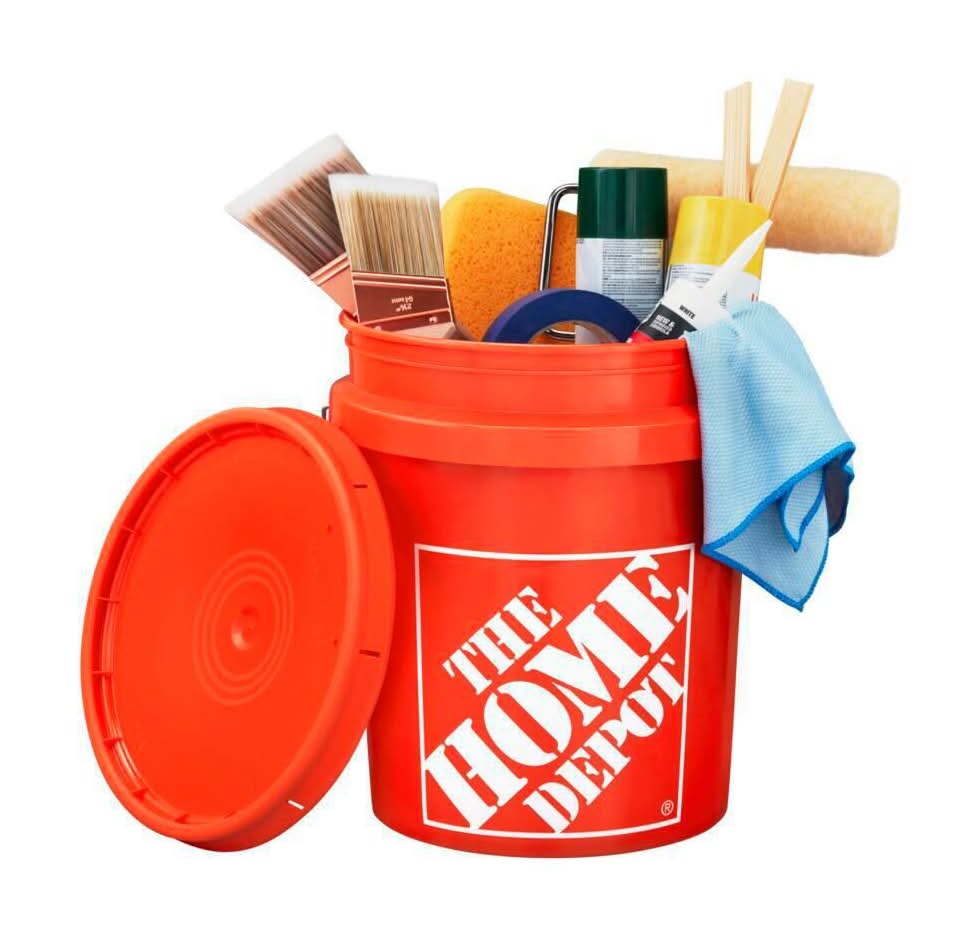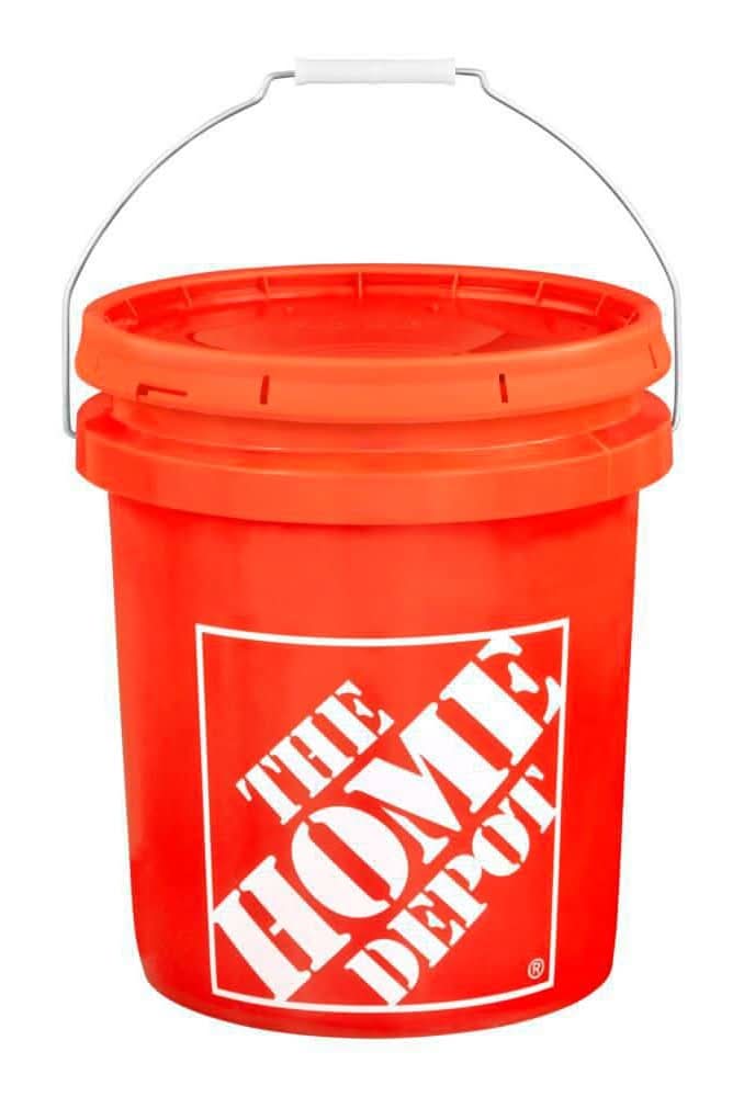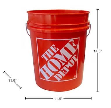 Use the 5 Gal. Orange Homer Bucket to haul parts, paint, topsoil and other household and work-site items. This orange, plastic bucket holds up to a 9 in. bucket grid. The Home Depot logo is featured on its side. Color: Orange