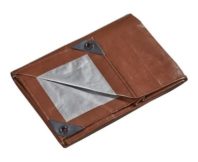 The Everbilt super heavy duty tarps are ideal for long term covering and protection. Features include high strength poly carbonate grommets every 24 in. with reinforced plastic corner guards for tight, secure tie down strength. Other features include reversible tarp colors-one side environmentally friendly dark brown color-other side silver color for UV sun deflection. Ideal tarp where a strong, rugged, durable and long lasting tarp is needed. • Color: Brown/silver • Size: 16 ft x 20 ft